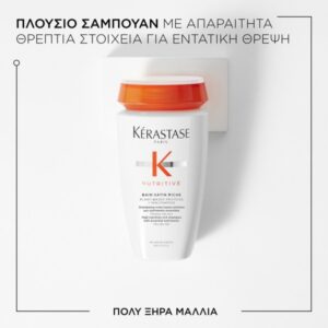 Τι είναι; Πλούσιο σαμπουάν εντατικής περιποίησης με θρεπτικά συστατικά Σας έχουν κουράσει τα ξηρά σας μαλλιά, και είστε έτοιμοι να τα παρατήσετε; Το Nutritive Bain Satin Riche μπορεί να βοηθήσει. Πρόκειται για ένα σαμπουάν εντατικής θρέψης για πολύ ξηρά μαλλιά. Καθαρίζει σε βάθος τα μαλλιά, ενώ ταυτόχρονα αναπληρώνει την υγρασία τους αφήνοντάς τα ανάλαφρα και πιο διαχειρίσιμα. Ένα σαμπουάν που σίγουρα θα ξεδιψάσει τα ξηρά σας μαλλιά! Το Bain Satin Riche έχει λευκή, κρεμώδη τζελ υφή που δημιουργεί πλούσιο αφρό για ελαχιστοποίηση της τριβής, κάτι που το καθιστά το ιδανικό σαμπουάν για τριχωτό με κνησμό και πολύ ξηρά μαλλιά. Πώς λειτουργεί; Εκτός από την απίστευτη δόση θρεπτικών συστατικών που περιέχει, το σαμπουάν Bain Satin Riche είναι επίσης εμπλουτισμένο και με άλλα αρκετά ενδιαφέροντα συστατικά, όπως Φυτικές Πρωτεΐνες και Πολυμερή Κατά της Ξηρότητας. Τα συστατικά αυτά προσφέρουν εντατική θρέψη και ενδυνάμωση, ανεβάζοντας το Bain Satin Riche στην κορυφή των καλύτερων σαμπουάν για πολύ ξηρά μαλλιά. Ποια είναι τα βασικά συστατικά; ΠΡΩΤΕΪΝΕΣ ΦΥΤΙΚΗΣ ΠΡΟΕΛΕΥΣΗΣ: Αυτό το σαμπουάν εμπεριέχει πρωτεΐνες σιταριού, καλαμποκιού και σόγιας που δρουν σαν συμπλήρωμα διατροφής για τα μαλλιά. Σε συνδυασμό με λιπαρά οξέα και βιταμίνες, θρέφουν τα μαλλιά με απαραίτητα θρεπτικά συστατικά. ΝΙΑΣΙΝΑΜΙΔΗ: Παράγωγο της Βιταμίνης Β3. “”Σφραγίζει”” τα θρεπτικά συστατικά στην τρίχα, ενισχύοντας τον προστατευτικό φραγμό της τρίχας για μαλλιά με υγιή όψη σε βάθος χρόνου. ΓΛΥΚΕΡΙΝΗ: Φυσικής προέλευσης. Ενισχύει τις ενυδατικές ιδιότητες της σύνθεσης. Δηλαδή τι αποτέλεσμα θα έχει στα μαλλιά μου; – Αναζωογονεί και ενδυναμώνει τα μαλλιά καταπολεμώντας την αφυδάτωση. – Αποκαθιστά τον όγκο και τη λάμψη των μαλλιών. – Δίνει στα μαλλιά δύναμη και αντοχή. +56% άμεση ενυδάτωση & 72 ώρες θρέψης* +58% περισσότερη απαλότητα* +85% περισσότερη λάμψη* * Δοκιμή με όργανα μετά από εφαρμογή του Bain Satin Riche. Συχνές Ερωτήσεις Τι νέο υπάρχει στο Bain Satin Riche; Το BAIN SATIN RICHE είναι ένα νέο προϊόν, με νέα σύνθεση εμπλουτισμένη με τα συστατικά της ανανεωμένης σειράς. Ποια η διαφορά ανάμεσα στο Bain Satin και στο Bain Satin Riche; Το BAIN SATIN είναι κατάλληλο για ξηρά μαλλιά, και προσφέρει ενυδάτωση με απαραίτητα θρεπτικά συστατικά. Το BAIN SATIN RICHE είναι κατάλληλο για πολύ ξηρά μαλλιά, και προσφέρει πλούσια, εντατική θρέψη με απαραίτητα θρεπτικά συστατικά. Μπορεί η σειρά Nutritive να χρησιμοποιηθεί σε καθημερινή βάση; Ναι, η σειρά Nutritive είναι σχεδιασμένη για καθημερινή χρήση, κάτι σαν μια διατροφή για τα μαλλιά! Σε τι διαφέρει η νέα Nutritive από την προηγούμενη σειρά; Η προηγούμενη σειρά Nutritive περιείχε συστατικά που δρούσαν στα ξηρά έως πολύ ξηρά μαλλιά. Η νέα Nutritive είναι εμπλουτισμένη με 2 ενεργά συστατικά που καταπολεμούν την έλλειψη θρεπτικών συστατικών από το τριχωτό ως τις άκρες. Εκτός από νέα προϊόντα, η σειρά διαθέτει επίσης νέες συνθέσεις και νέες συσκευασίες. Η σειρά είναι σχεδιασμένη και για γυναίκες και για άνδρες; Ναι, η σειρά Nutritive είναι κατάλληλη για κάθε τύπο ξηρών μαλλιών, και μπορεί να χρησιμοποιηθεί τόσο από γυναίκες όσο και από άνδρες.