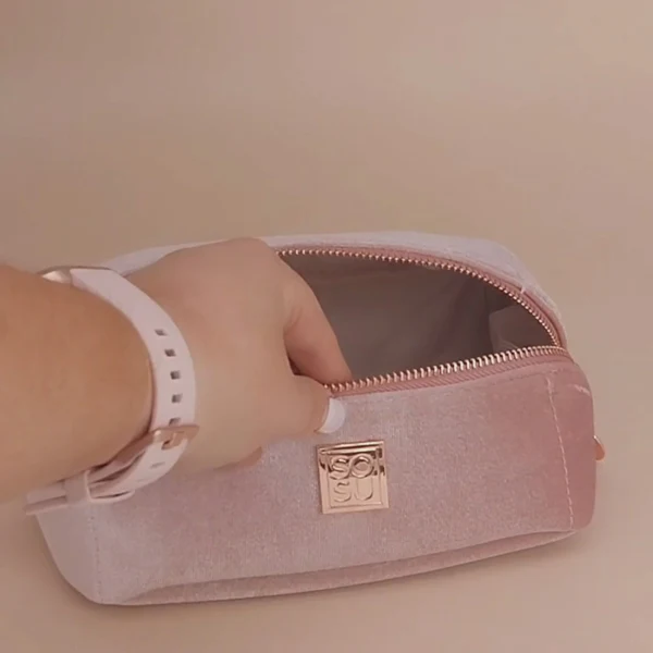 Πολυτελής βελούδινη τσάντα ιδανική για να αποθηκεύσετε όλα τα αγαπημένα σας προϊόντα SOSU Cosmetics. Το μεγάλο άνοιγμα με φερμουάρ και τα προστατευτικά στο πλάι κάνουν την τσάντα πολύ βολική για να γεμίζετε με προϊόντα, χωρίς να υπάρχει πιθανότητα να χυθεί ή να πέσουν μικρά κομμάτια. Το βελούδινο φινίρισμα δίνει μια αίσθηση πολυτέλειας και είναι επίσης cruelty-free και vegan.